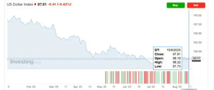 U.S. Dollar Index (DXY) снизился на 0,42%, что также связано с ожиданиями результатов встречи Трампа с Путиным.
