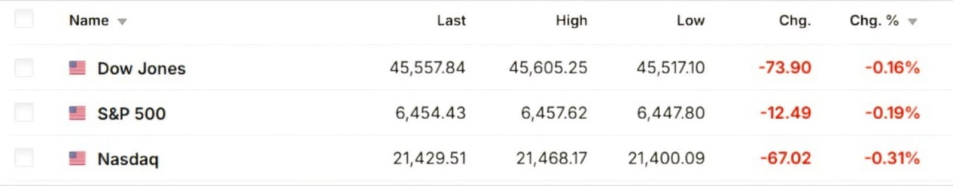Американские фондовые рынки открылись с небольшим снижением. Это связано с пересмотром ожиданий инвесторов по ставке Федеральной резервной системы (ФРС) и опасениями по поводу высокой инфляции, а также падением акций Nvidia перед отчетом. Индекс Dow Jones снизился на 0,16%, S&P 500 - на 0,19%, NASDAQ - на 0,31%.