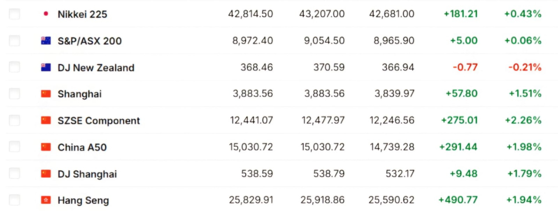 Азиатские рынки демонстрируют положительную динамику. В Японии индекс Nikkei 225 вырос на 0,43%. Фондовые индексы Китая также показывают рост благодаря предоставлению Народным банком Китая кредитов на сумму 600 миллиардов юаней для повышения ликвидности банков и заявлениям главы ФРС о возможном снижении ключевой процентной ставки.