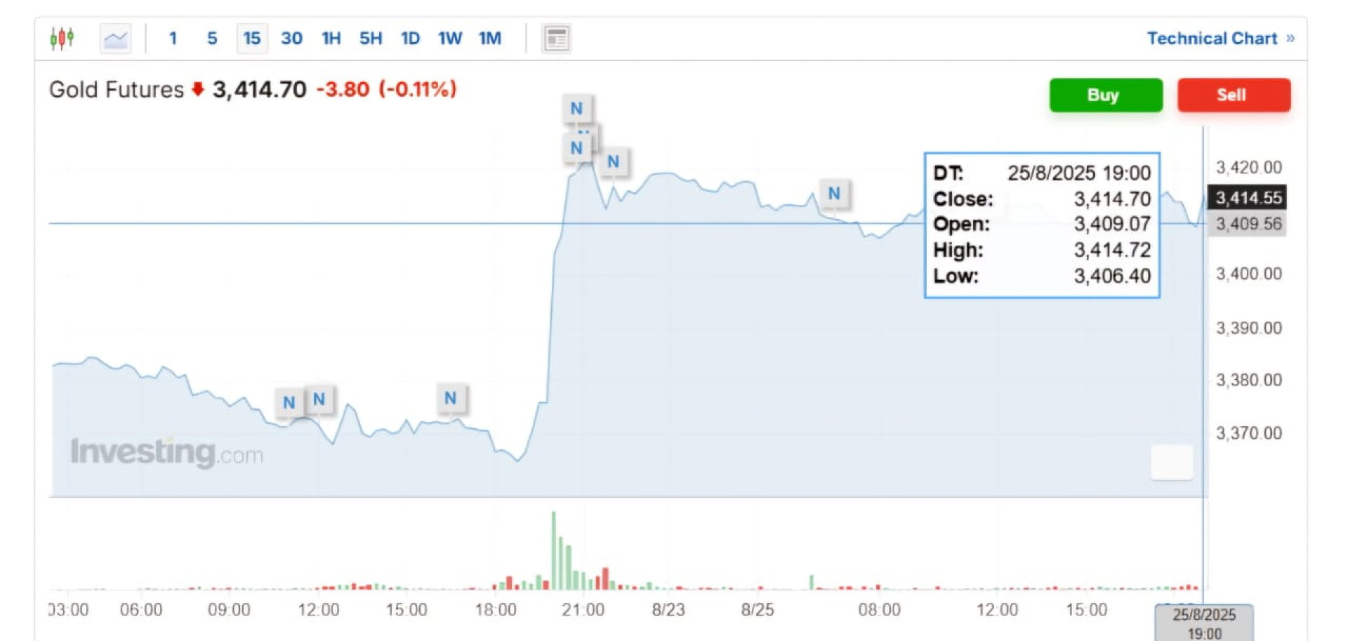 Цена на золото снизилась на 0,11% до 3 414,70 доллара за унцию из-за укрепления доллара. Также неожиданным стало решение президента США Дональда Трампа об отмене пошлин на золотые слитки.