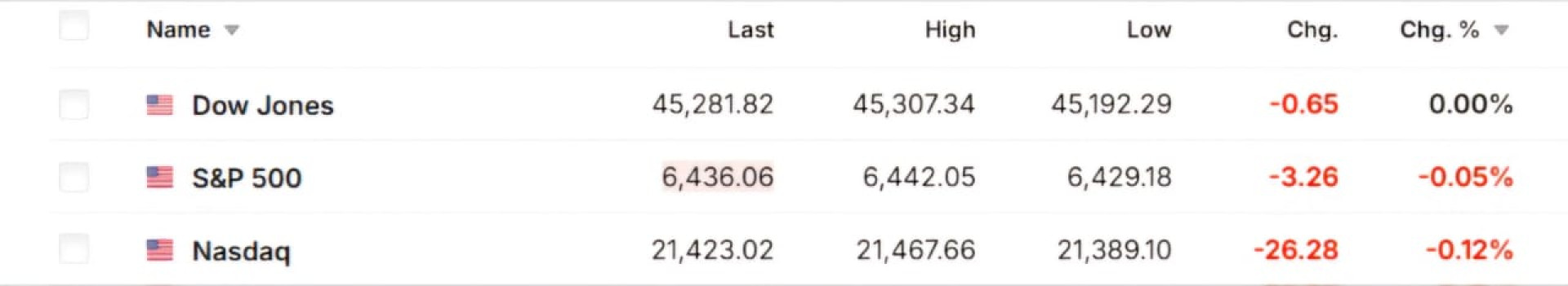 - Индекс S&P 500 - на 0,05 процента;