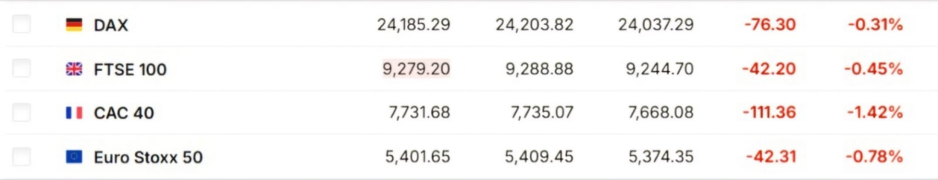 Снижение на европейских рынках также обусловлено слухами о новых тарифах и сомнениями в независимости ФРС.
