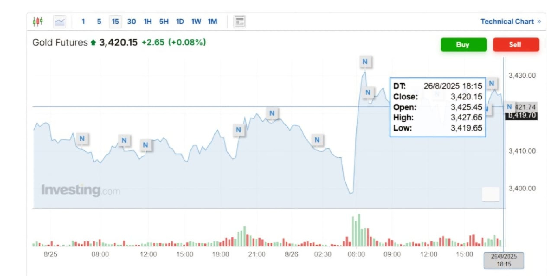 Фьючерс на золото вырос на 0,08 процента до 3 420,15 доллара за унцию на фоне спроса на более устойчивые финансовые инструменты.
