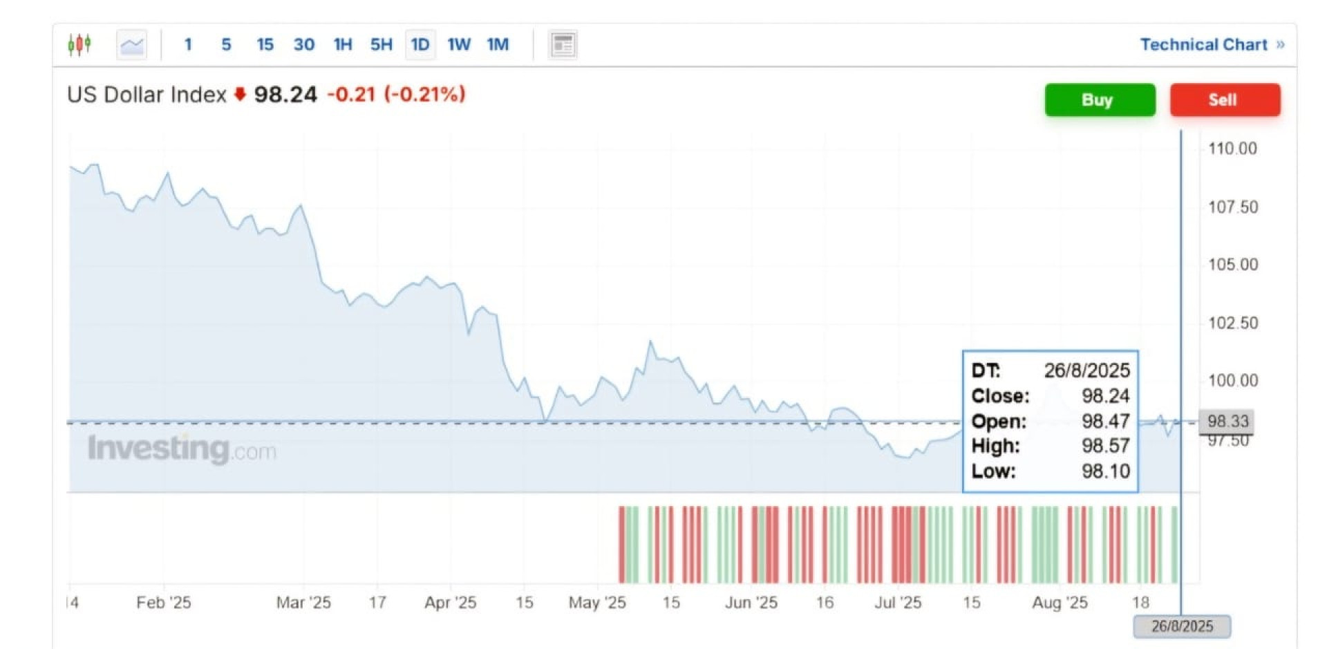 U.S. Dollar Index (DXY) сначала рос на ожиданиях снижения процентных ставок ФРС, но затем снизился на 0,21 процента из-за решений президента США.