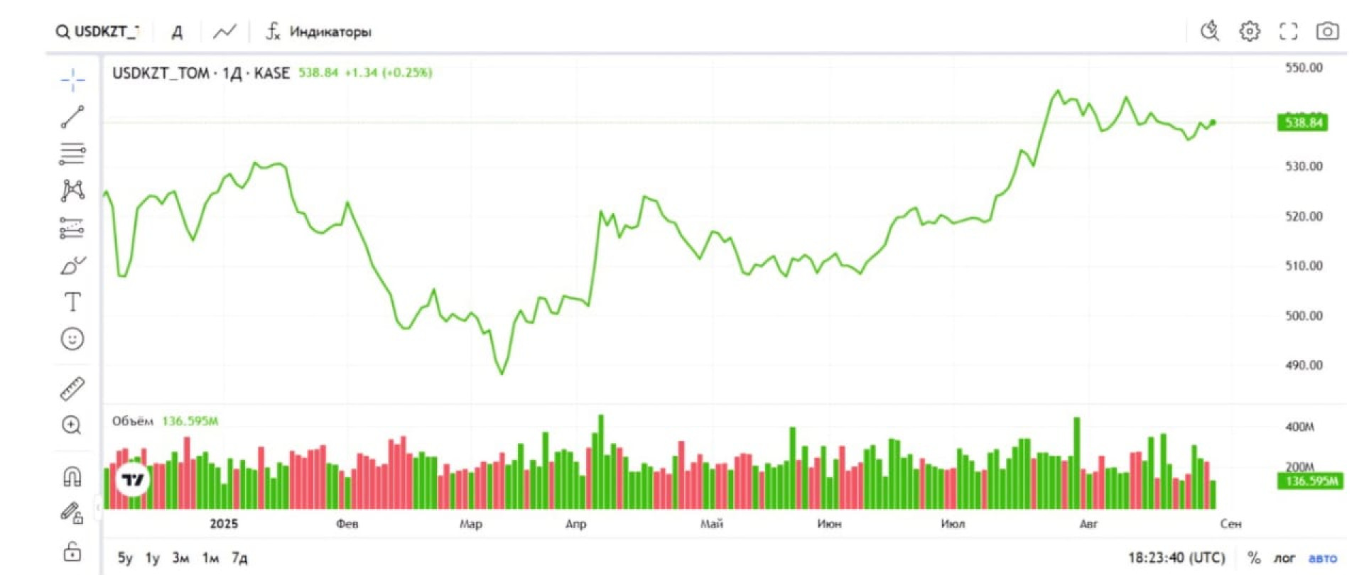 - Официальный курс Национального банка на 29 августа составляет 537,76 тенге за доллар.