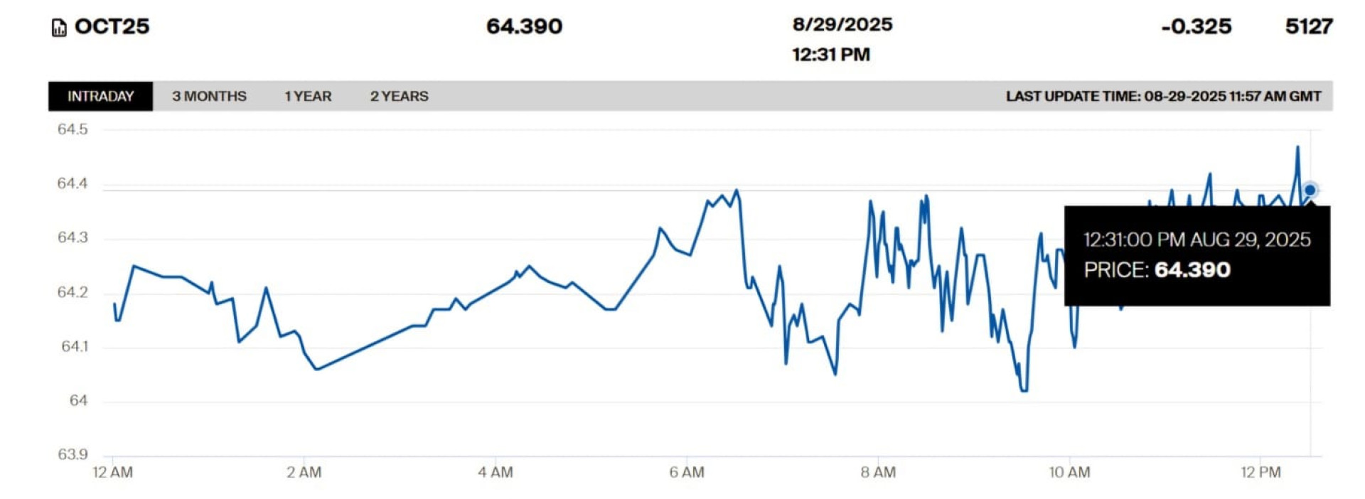 - Стоимость октябрьских фьючерсов на нефть марки WTI сперва росла, но затем уменьшилась на 0,32% - до 64,39 доллара за баррель.