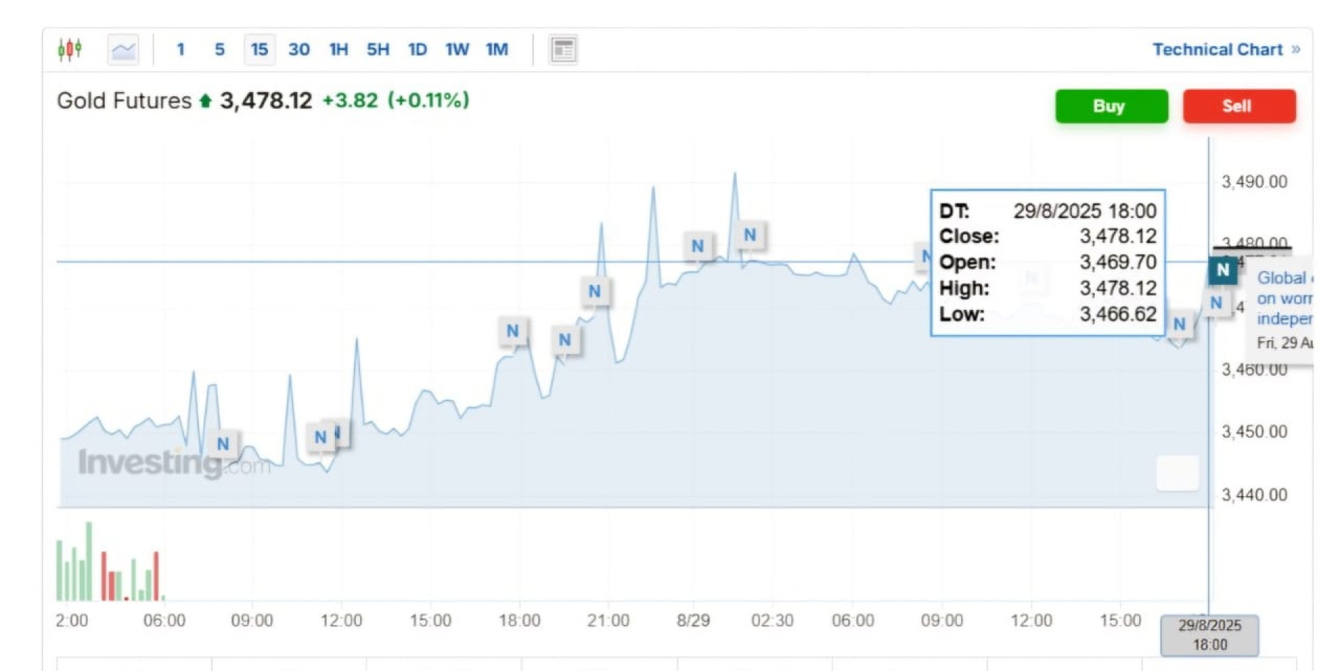 Фьючерс на золото снова подрос на 0,11% - до 3 478,12 доллара за унцию. Доллар США стал слабее, а инвесторы всё больше рассчитывают, что ФРС снизит процентные ставки уже в сентябре, делая золото более привлекательным вложением.