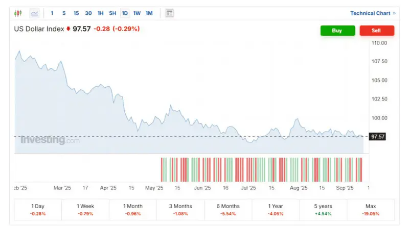 U.S. Dollar Index (DXY) ослаб на 0,28 процента. Это связано с тем, что данные по индексу потребительских цен в США показали рост, но не настолько сильный, чтобы отпугнуть ожидания снижения ставок. В то же время рост числа обращений за пособием по безработице усилил впечатление о слабости рынка труда, что повышает шансы на более мягкую денежно-кредитную политику.