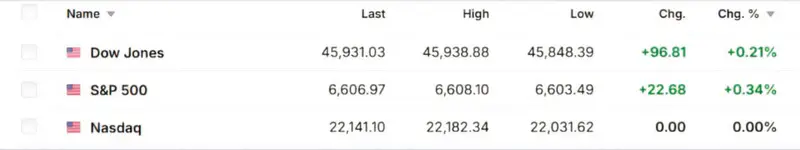 Американские рынки открылись в зеленой зоне, главным образом из-за ожиданий снижения процентной ставки ФРС США. Индекс Dow Jones вырос на 0,21 процента, S&P 500 - на 0,34 процента, NASDAQ - на 0,54 процента.