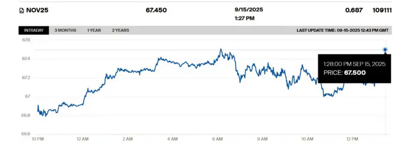 Нефть подорожала из-за геополитической напряжённости и ожиданий на рынке. Цена ноябрьских фьючерсов на нефть марки Brent на лондонской бирже ICE повысилась на 0,69 процента - до 67,45 доллара за баррель.