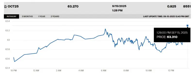 Стоимость октябрьских фьючерсов на нефть марки WTI увеличилась на 0,93 процента - до 63,27 доллара за баррель.
