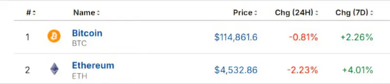 Курс Bitcoin (BTC) подешевел на 0,81 процента, Ethereum (ETH) - на 2,23 процента до 4 532,86 доллара за одну монету. Инвесторы ожидают решения ФРС США по ставке, и неопределённость заставляет их продавать более рискованные активы.