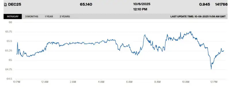 Цена декабрьских фьючерсов на нефть марки Brent на лондонской бирже ICE повысилась на 0,94 процента - до 65,14 доллара за баррель.