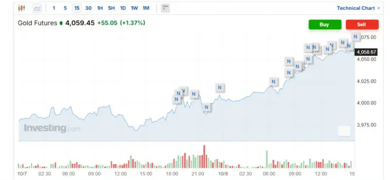 Золото продолжает держаться выше рекордного уровня в 4 000 долларов за унцию, что связано с экономической и политической неопределенностью в США. Фьючерсы на золото выросли на 1,37 процента, достигнув 4 059,45 доллара за унцию.