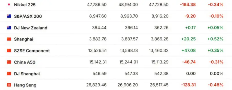 На некоторых азиатских рынках не проводились торги из-за праздников в Китае, однако фондовый индекс Hang Seng немного снизился на 0,48 процента, а японский индекс Nikkei 225 упал на 0,34 процента.