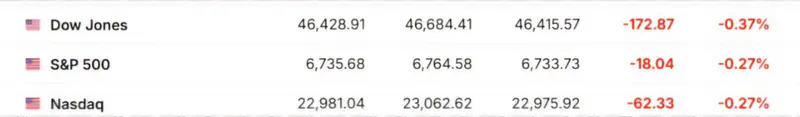 Индекс Dow Jones понизился на 0,37 процента, S&P 500 - на 0,27 процента, NASDAQ - на 0,27 процента.