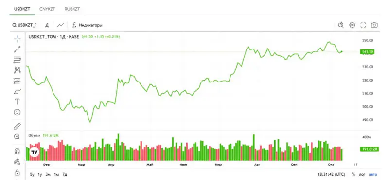 Отметим, что официальный курс Национального банка на 9 октября составляет 540,06 тенге за доллар.