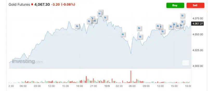Фьючерс на золото понизился на 0,08 процента - до 4 067,30 доллара за унцию.