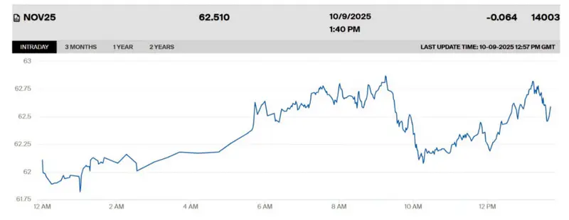 Стоимость ноябрьских фьючерсов на нефть марки WTI уменьшилась на 0,06 процента - до 62,51 доллара за баррель.