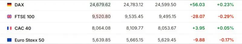 При этом CAC 40 (+0,05 процента, Франция) и DAX (+0,23 процента, Германия) оказались в плюсе.