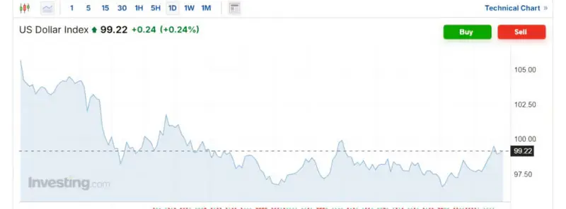 Индекс доллара США (U.S. Dollar Index, DXY) укрепился на 0,24% на фоне торгового конфликта между США и Китаем. Соединенные Штаты ввели 100-процентные пошлины на импорт из Китая, в то время как Китай установил запрет на экспорт редкоземельных металлов. Несмотря на лидерство США в производстве полупроводников, страна сильно зависит от Китая в поставках редких металлов.