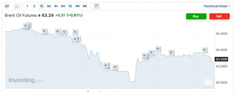 Нефть подорожала на фоне перемирия на Ближнем Востоке и заключения соглашения между Израилем и ХАМАС, что снизило геополитические риски. Цена декабрьских фьючерсов на нефть марки Brent на лондонской бирже ICE увеличилась на 0,81% и составила 63,24 доллара за баррель. Ноябрьские фьючерсы на нефть марки WTI выросли на 1,04% до 59,51 доллара за баррель.