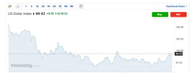Индекс доллара США (U.S. Dollar Index, DXY) укрепился на 0,15% на фоне продолжающегося конфликта между Соединенными Штатами и Китаем. США ввели 100% пошлины, а КНР ограничил экспорт редкоземельных металлов, что может привести к дополнительным портовым сборам и проблемам с перевозками.