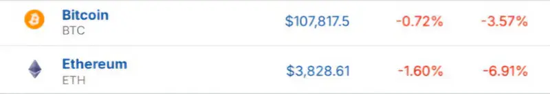 Курс Bitcoin (BTC) упал на 0,72 процента, а Ethereum (ETH) - на 1,60 процента, составив 3 828,61 доллара за одну монету. Снижение интереса инвесторов к рисковым активам связано с растущей неопределённостью в мировой экономике и увеличением торговых и геополитических рисков.