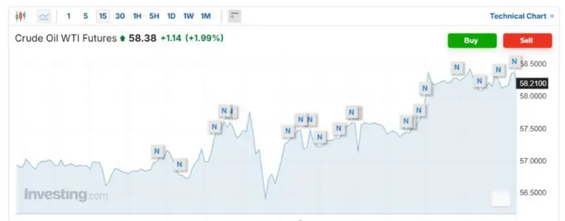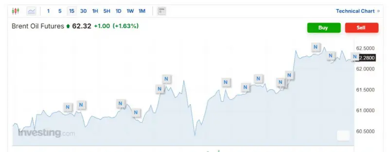 Нефть подорожала на фоне ожиданий заключения торгового соглашения США с Индией и Китаем, а также из-за снижения запасов нефти в США и планов Вашингтона пополнить истощённые нефтяные резервы. Цена декабрьских фьючерсов на нефть марки Brent увеличилась на 1,63 процента, составив 62,32 доллара за баррель. Ноябрьские фьючерсы на нефть марки WTI выросли на 1,99 процента, достигнув 58,38 доллара за баррель.