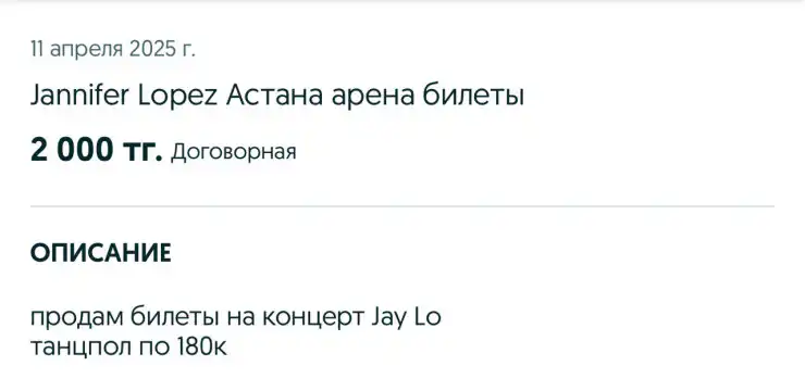 В Астане невероятно быстро раскупили билеты на шоу знаменитой Дженнифер Лопес. Уже на следующий день в интернете появились объявления о продаже по завышенным ценам.