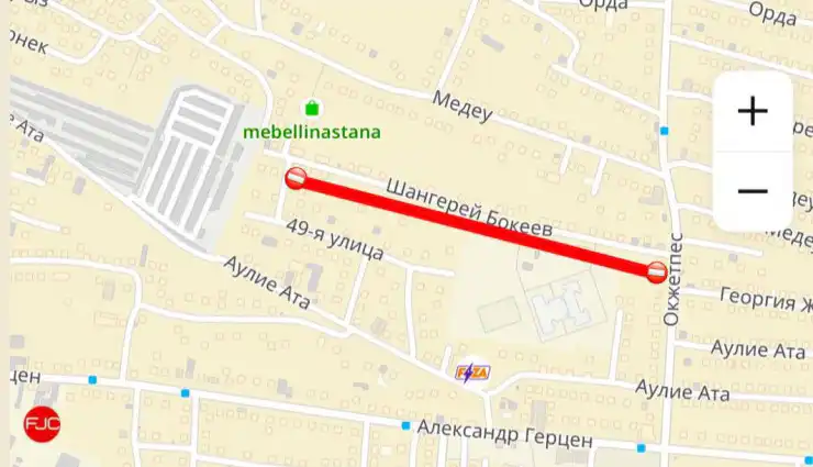 - улица Жанаконыс - от улицы Кенжин до Бабатайулы;