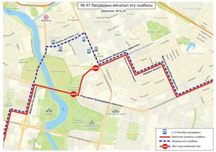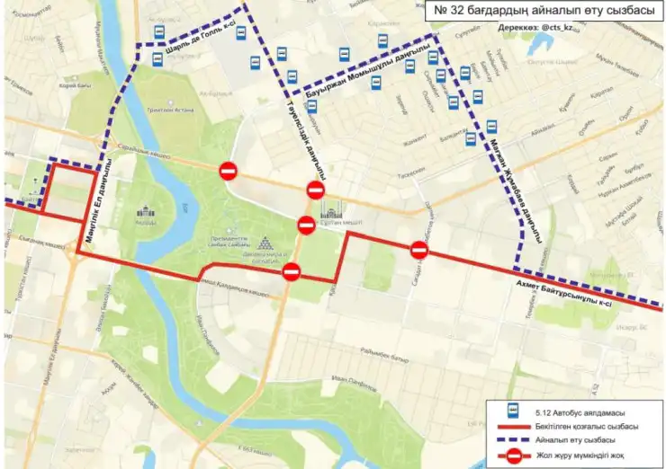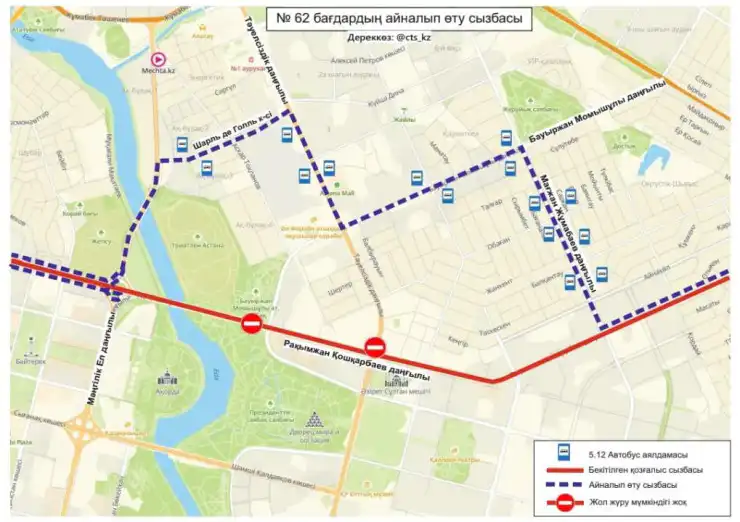 Дополнительно, движение на левом берегу Астаны ограничено до осени из-за строительства LRT. Как сообщили в City Transportation Systems (СTS), с 21:00 20 апреля по 25 сентября планируется полное ограничение движения по правостороннему съезду с улицы Сыганак на проспект Мангилик Ел (в сторону улицы Достык) для транспорта, движущегося со стороны моста "Арыс".