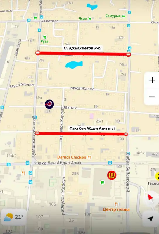 Согласно информации от акимата, начнется средний ремонт улиц Фахта бен Абдул Азиза и Кожахметова на участке между улицами Бейсековой и Байсеитовой.