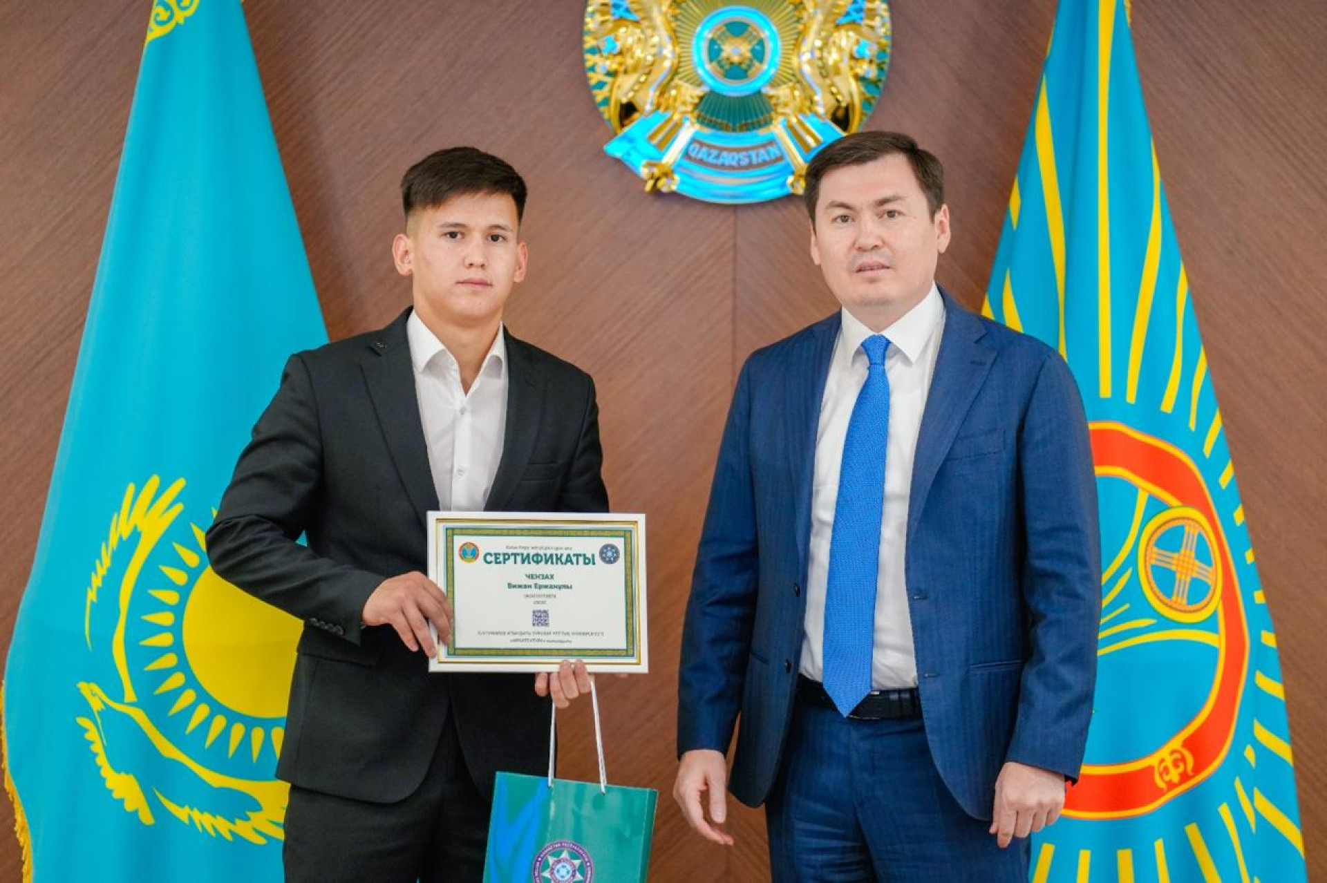 Другим обладателем гранта стал Бижан Чензах, который служил в Кордайском районе Жамбылской области и выбрал специальность "архитектура".