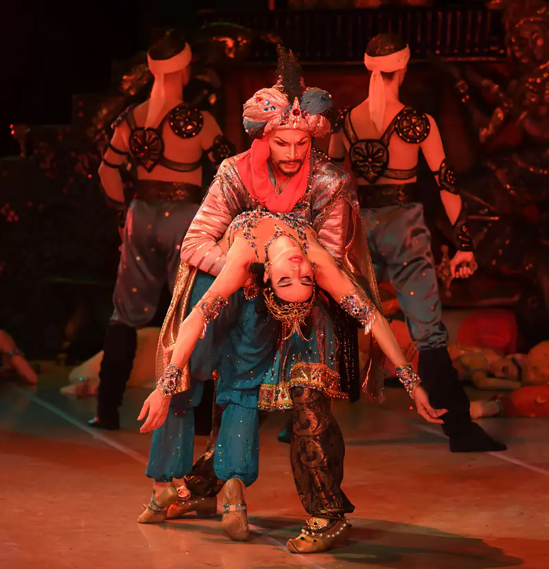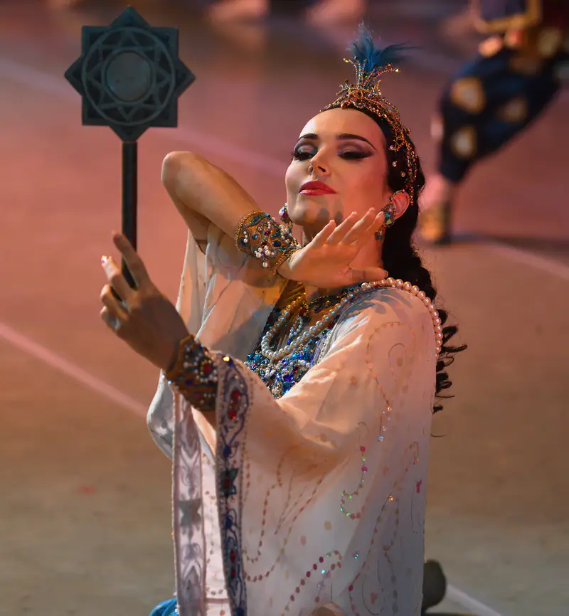 - Второе отделение — "Шехеразада": восточный миф, воплощённый в цвете, музыке и страсти.