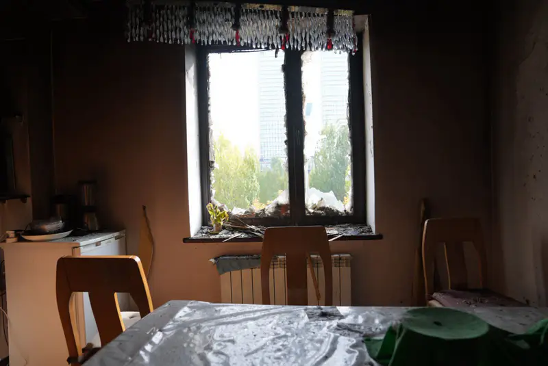 В кухне стекла начали трещать от высокой температуры, и в итоге полностью выбило все окна.