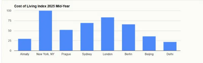 Эксперты отмечают, что для иностранцев Казахстан остается сравнительно доступным, однако для местных жителей более низкие индексы в рейтинге свидетельствуют о меньшем уровне доходов. Тем не менее, казахстанские города уверенно укрепляют свои позиции и постепенно сокращают разрыв с другими странами региона.