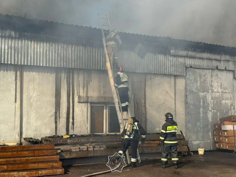 Пожар в Астане: пожарные борются с возгоранием в складском помещении рядом с рынками 'Шапагат' и 'Алем'