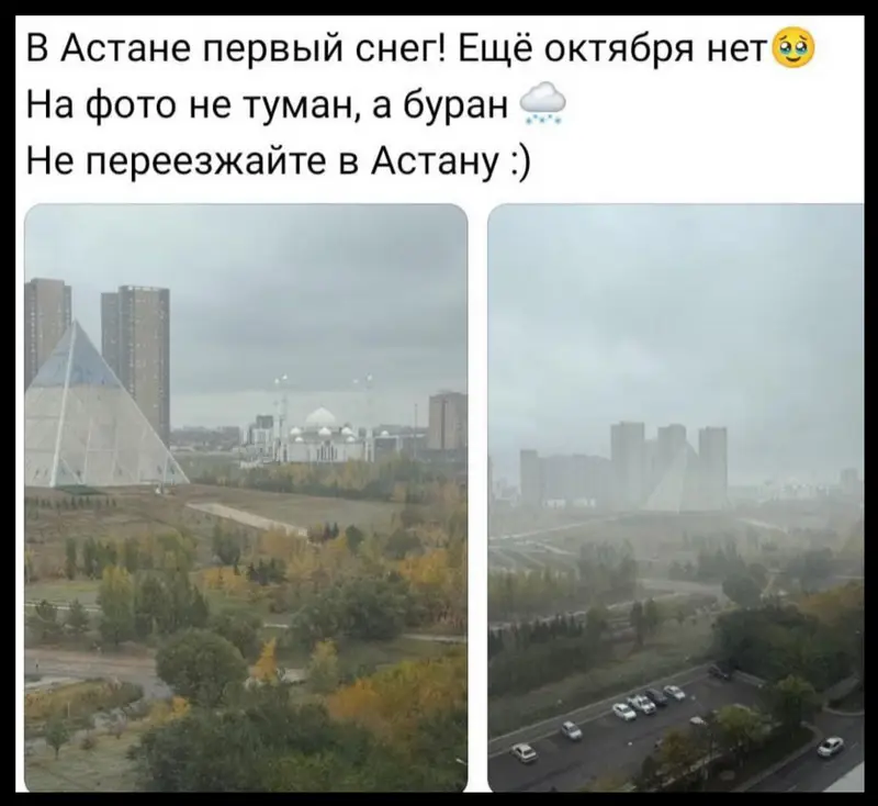 Первый снег в Астане и Костанае: жители делятся снимками и видео, создавая атмосферу веселья и удивления в социальных сетях.