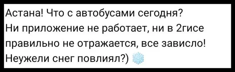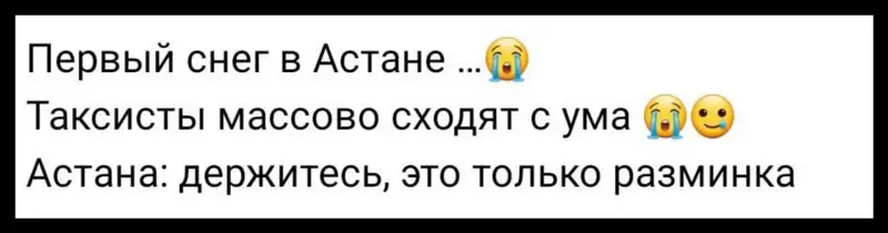 Некоторые астанчане шутят, что вместе со снегом «внезапно выросли и цены на такси», так как вызвать машину утром стало дороже, чем обычно.