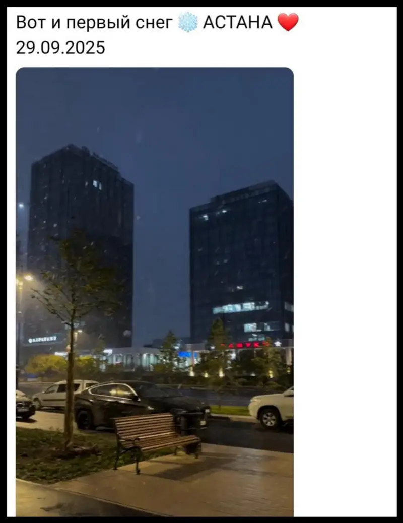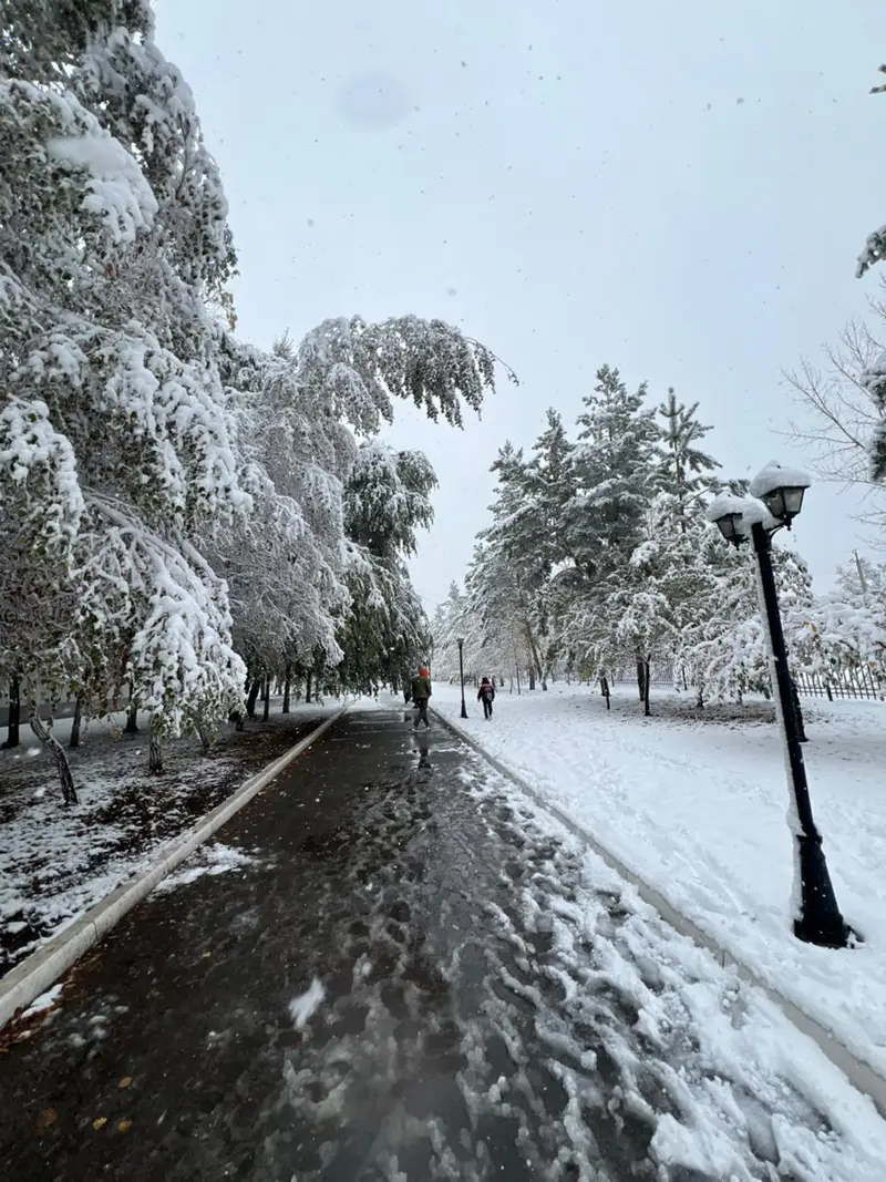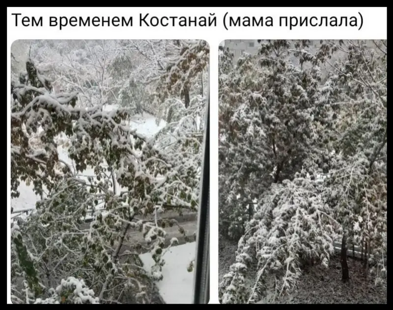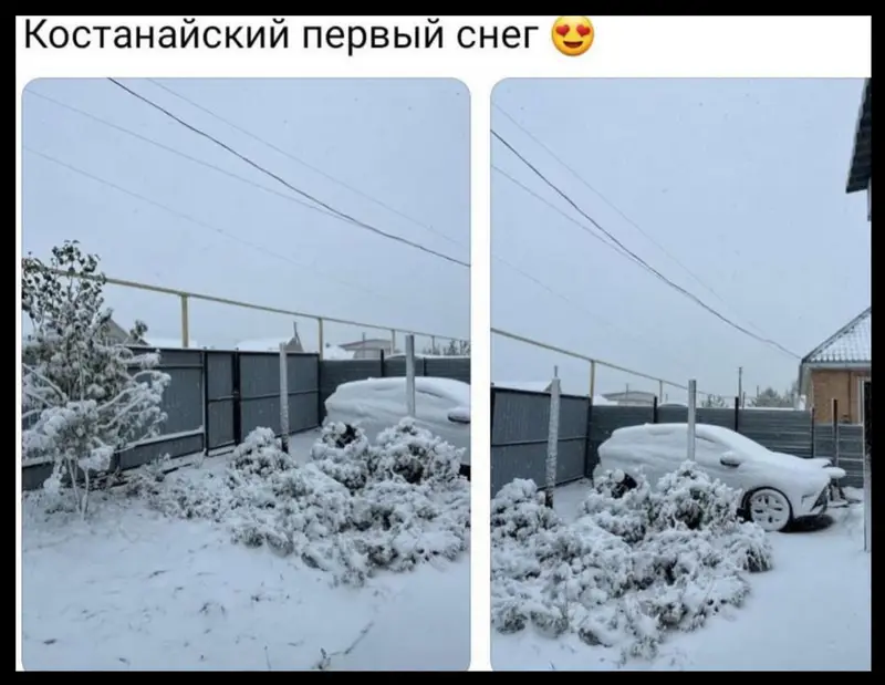 В Астане и Костанае жители активно делятся фотографиями и видео первого снега, который неожиданно выпал в конце сентября. Многие пользователи социальных сетей отмечают, что это создает новогоднюю атмосферу, хотя до зимы еще далеко.