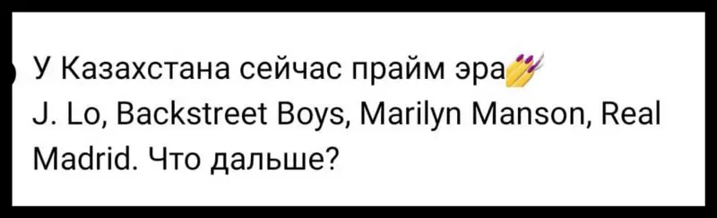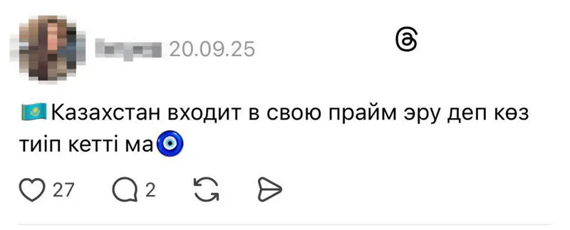 Пользователи соцсети Threads запустили новый тренд - "Казахстан в прайм-эре". Поводом для обсуждения стали визиты мировых звёзд шоу-бизнеса и спорта: в Казахстан в этом году уже приезжали "Реал Мадрид", певица Дженнифер Лопес и другие знаменитости.