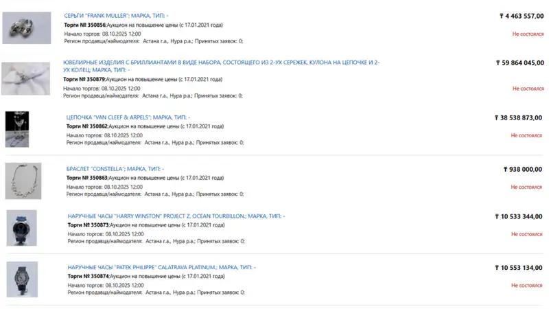 8 октября на электронные торги выставили 48 изъятых предметов роскоши общей стоимостью свыше 500 миллионов тенге.