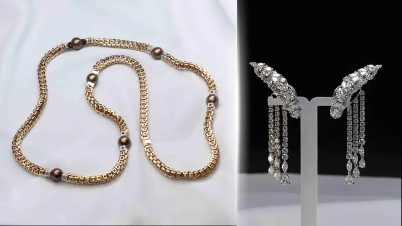 - Колье FOPE из жёлтого золота с бриллиантами и жемчугом – 4,7 миллиона тенге.