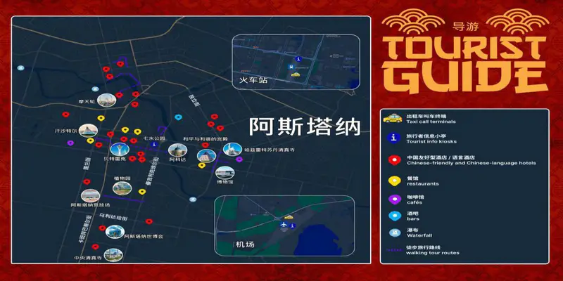 Для удобства китайских туристов в 2025 году был запущен проект China Pass, который включает маршруты с меню на китайском языке и сертифицированных гидов, готовых помочь гостям из Китая лучше узнать Астану.