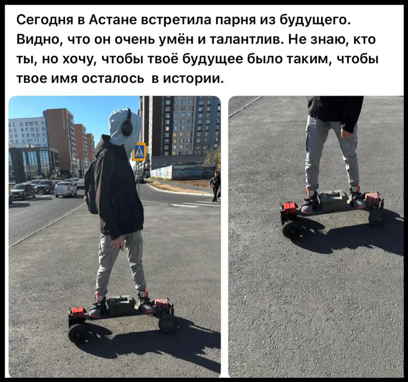 В Астане казахстанец Арстан привлек внимание общественности, катаясь на самодельном электроскейтборде. Это устройство, созданное им для зимних условий, стало объектом обсуждения после того, как девушка опубликовала его фотографии в Threads.