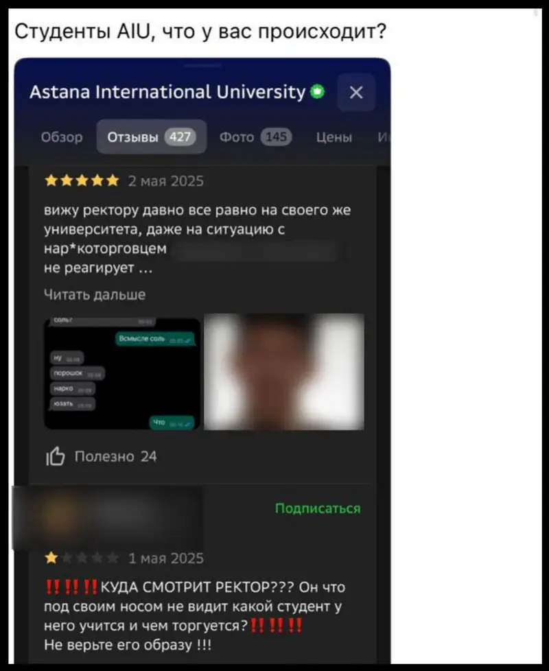 Пресс-служба Astana International University подтвердила, что они в курсе ситуации и провели внутреннюю проверку.