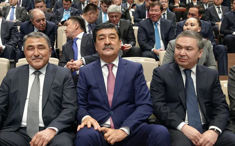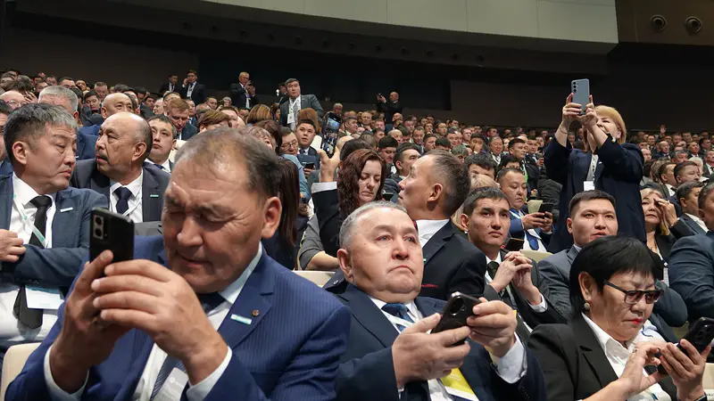 На секунду кажется, что это не форум сельских акимов, а парад костюмов-двоек, где участники соревнуются в оттенках синего и серого.