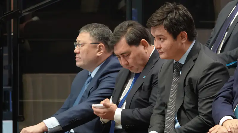 У главы Агентства по делам госслужбы Дархана Жазыкбая всё время работает ручка. Глава МВД Ержан Саденов сидит рядом, сосредоточенно слушая.