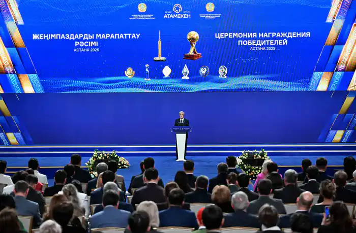 С первых минут выступления задаётся торжественный тон. Президент рассказывает, что учредил новый орден "Мейірім" – награду для тех предпринимателей, кто делает больше, чем требует бизнес-план: помогает людям, участвует в социальных проектах, берёт на себя ответственность там, где её обычно перекладывают.